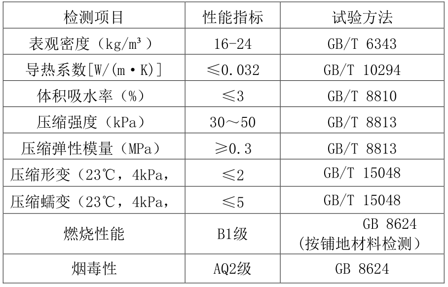 3.0.2HKS改性聚丙烯保溫隔聲板的主要性能指標(biāo)應(yīng)符合表3.0.2的規(guī)定。